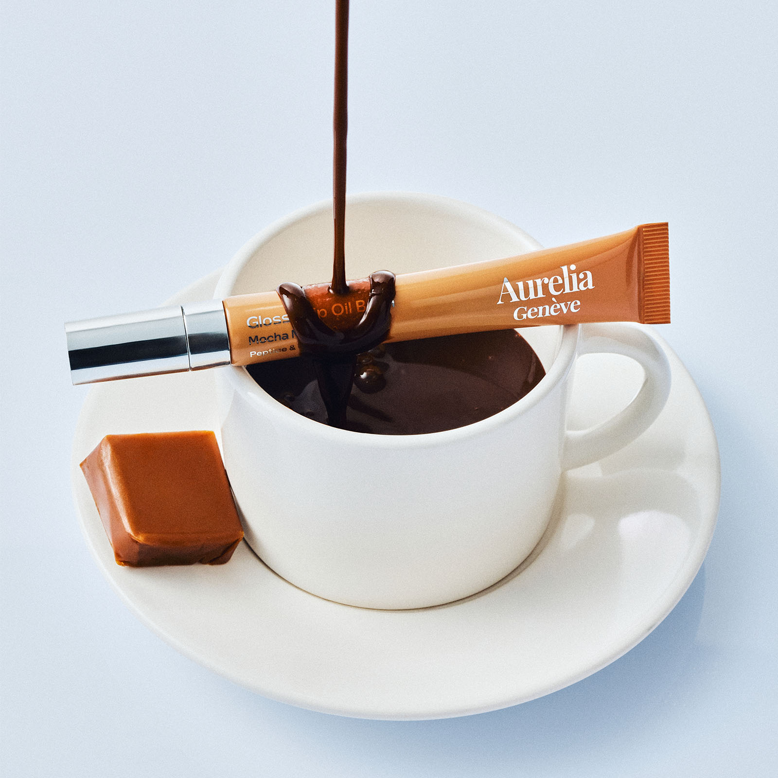 Glossy Lip Oil Balm - Peptide & Ceramid Infused - Mocha Mousse